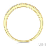A garden of light, captured in gold, this diamond fashion band brings a poetic touch to everyday elegance. It is a composition of symmetry and spontaneity; elegant, expressive, and effortlessly unique. On the ring top, at the center of the top rim blooms a delicate floral motif, formed by 7 pave hand set round cut diamonds, one in the center, encircled by 6. On either side of this luminous bloom, a twin row of 31 pave hand set round cut diamonds create a radiant band of brilliance, hugging the rim in a mirror-like cascade. For a final flourish, 7 flush set round cut diamonds are artfully scattered across the remaining gold surface in a graceful zig-zag, creating a mosaic-like interplay of sparkle and negative space. The fashion band is styled 10 karat yellow gold. Total diamond weight is 1/4 Ctw.