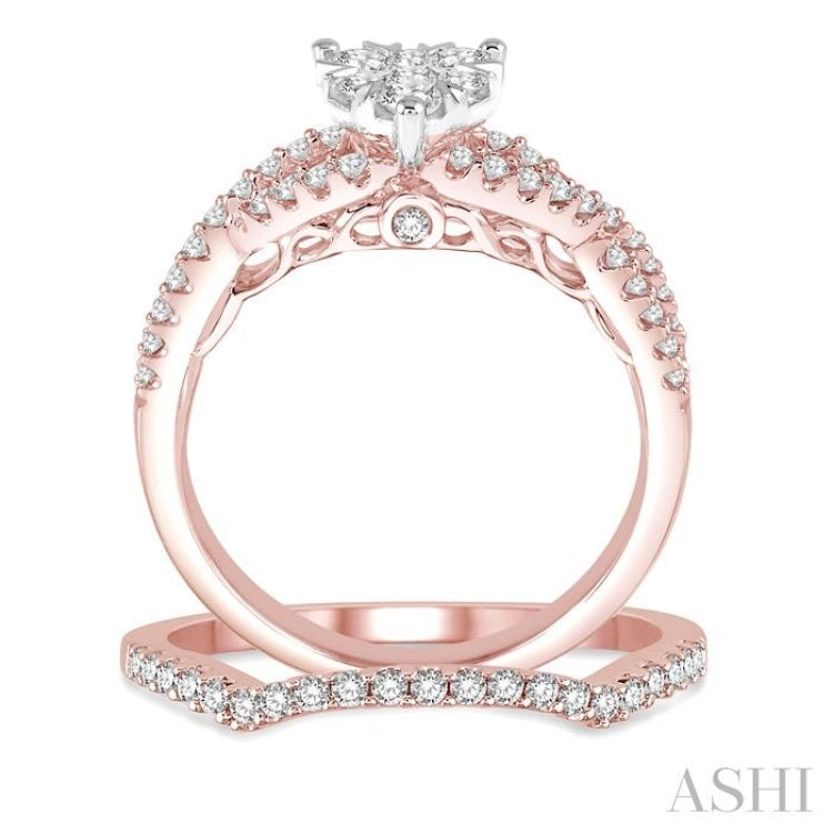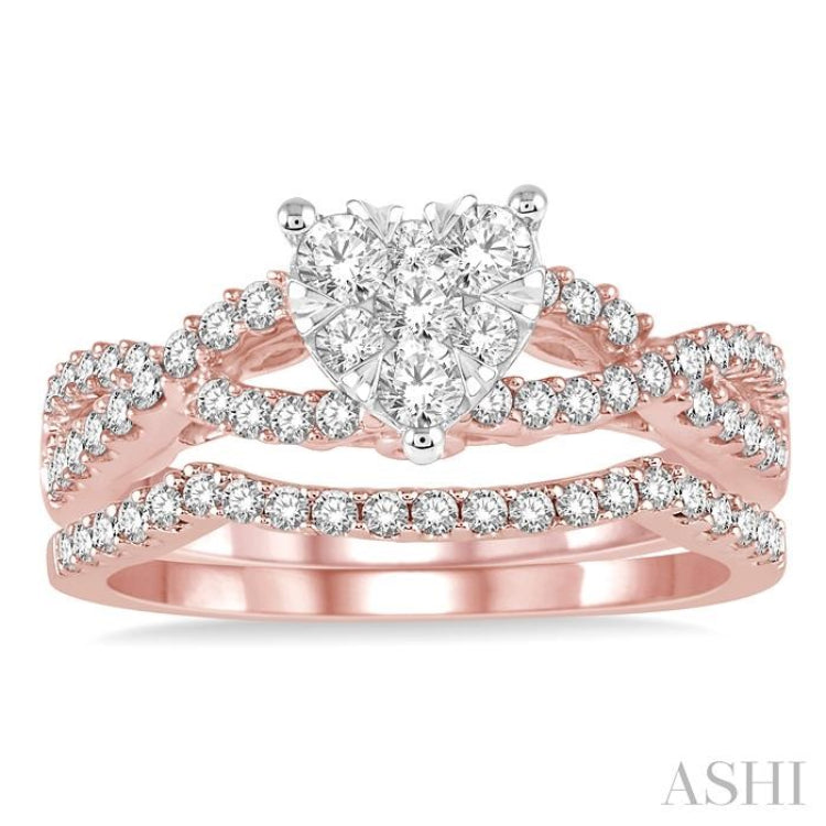 7/8 Ctw Diamond Lovebright Wedding Set with 3/4 Ctw Heart Shape Engagement Ring in Rose & White Gold and 1/6 Ctw Wedding Band in Rose Gold 14K