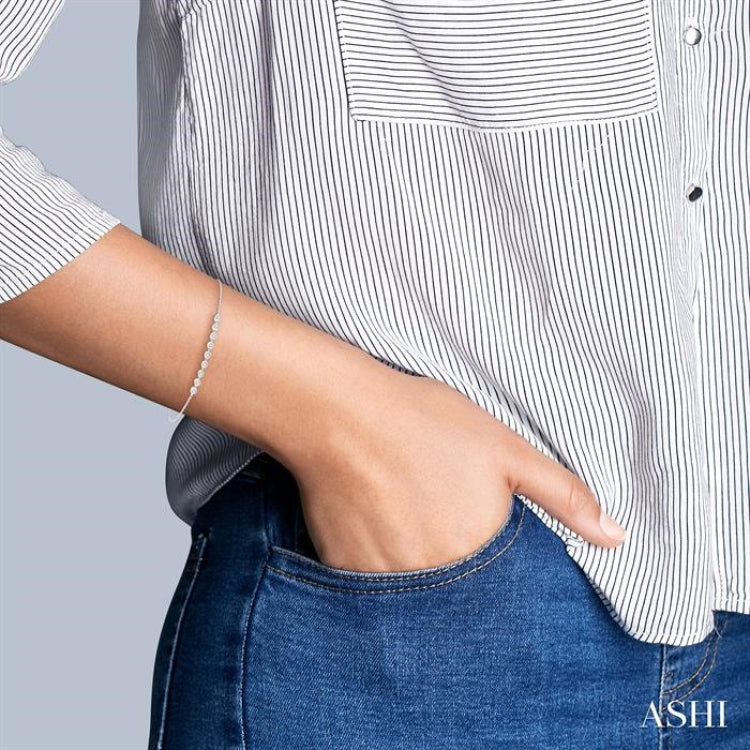 1/5 Ctw Bezel Round Cut Diamond Petite Bracelet in 10K White Gold