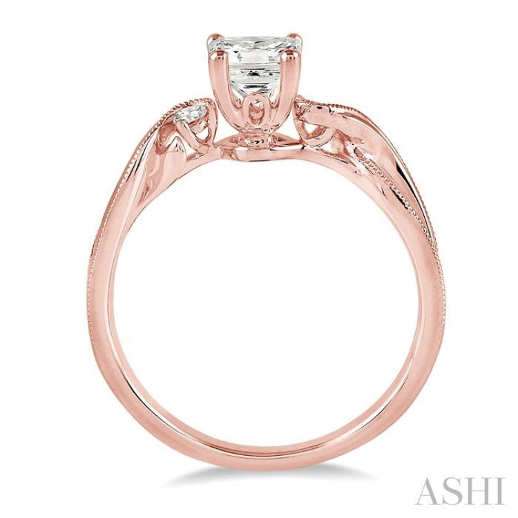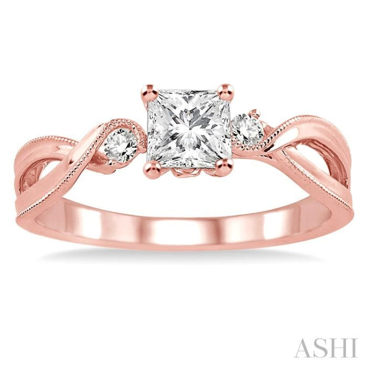 3/8 Ctw Diamond Engagement Ring with 1/3 Ct Princess Cut Center Stone in 14K Rose Gold